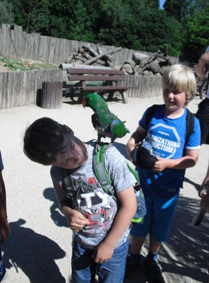 Nach der Zooschule konnten wir Äffchen füttern und Papageien auf die Schulter nehmen. Viele waren richtig mutig. Wer ein Cappy trug musste aufpassen, dass der Papagei nicht auf den Kopf kletterte, denn die Knöpfe waren sehr verlockend. Viel Zeit hatten wir auch zum Eis essen und Spielen auf dem großen Spielplatz.