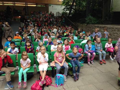 Am 11.07.2017 um 9.45 Uhr ging es los zu unserem alljährlichen Ausflug zur Freilichtbühne nach Barkhausen. 288 Kinder und 20 Erwachsene starteten den Fußmarsch gemeinsam vom Schulstandort in Holzhausen. Die Vorfreude war riesig und das Wetter perfekt.