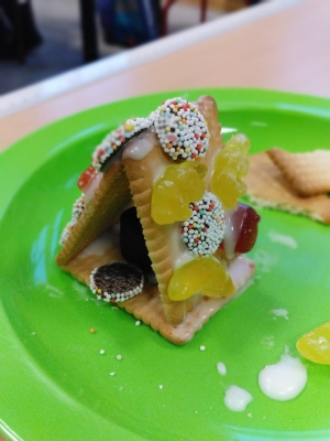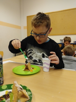 In der 2a wurden noch Hexenhäuschen gebastelt – und größtenteils ziemlich bald aufgegessen!