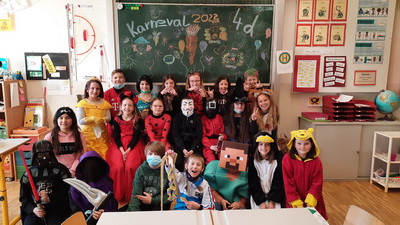 Wenn Dalmatiner, Prinzessinnen, Zauberer oder Steinzeitmenschen in der Schule auftauchen, feiern wir Karneval! In diesem Jahr wurde kräftig Rosenmontag gefeiert. Anbei ein paar Impressionen: |