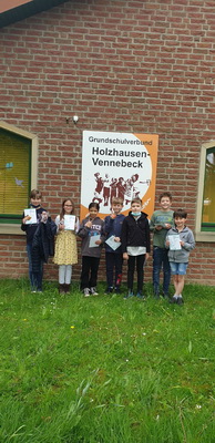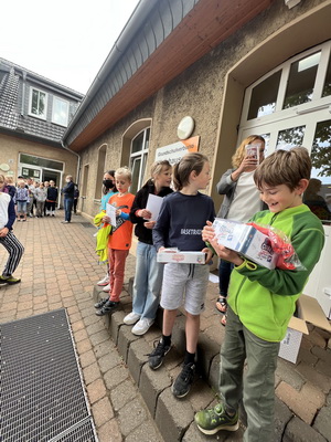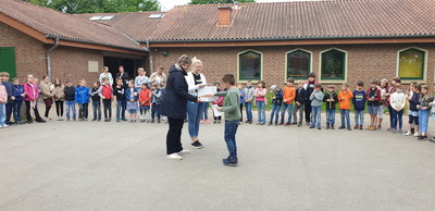 In diesem Schuljahr haben wir wieder - dank der Unterstützung des Fördervereins - am Känguru-Wettbewerb teilgenommen. An beiden Standorten wurden die Kinder mit den meisten Punkten nach der großen Pause für ihren Einsatz geehrt. Max Marlon und Max haben mit ihren Leistungen sogar Sonderpreise gewonnen. Herzlichen Glückwunsch! |