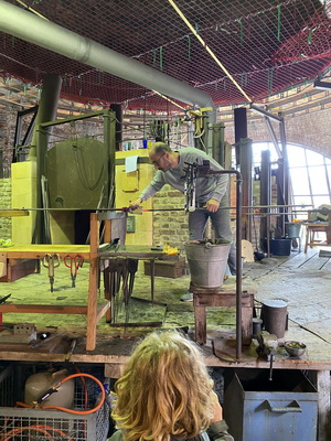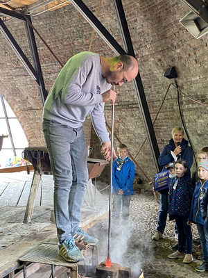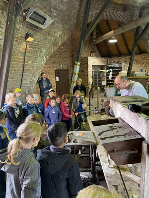 Die Klassen 3a und 3b wurden „Mit Feuer und Pfeife“ zu Glasforscher*innen. Zweifelsohne waren sie mit Feuereifer unterwegs, wenn auch ohne Pfeife. Nachdem die Schüler*innen Kohlen geholt hatten, mussten sie das Gemenge aus Sand, Kalk und Soda herstellen. Nun ging es in den Glasturm, wo sie dem Glasbläser zuschauten. Faszinierend, wie sich aus einem glühenden Glasklumpen ein schönes Trinkglas entwickelte. Nachdem die Verpackungs- und Transportfrage des Glases in der Korbflechterei geklärt war, gab es einen Kurzeinblick in die Glasschleiferei. Glas – welch wunderschönes Material! Kein Wunder, dass der ein oder andere Euro von der Hosentasche in den Shop wanderte. Wenn du auch wissen möchtest, was Glashonig ist, schau dich mal in der Glashütte um. Es lohnt sich auf jeden Fall. |