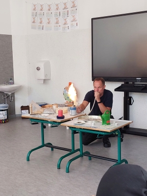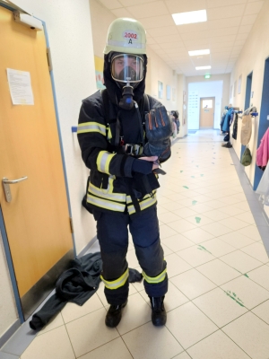 Im September fanden die Brandschutz-Tage statt. Dank großer Unterstützung der ortsansässigen Rettungskräfte konnte auf dem Schulhof ein Feuerwehrauto und ein RTW stehen, gelöscht werden, die Schutzkleidung ausprobiert, experimentiert und die Rauchentwicklung in einem Haus sichtbar gemacht werden.
