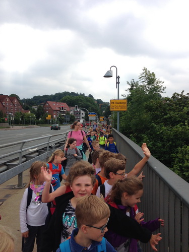 Am 11.07.2017 um 9.45 Uhr ging es los zu unserem alljährlichen Ausflug zur Freilichtbühne nach Barkhausen. 288 Kinder und 20 Erwachsene starteten den Fußmarsch gemeinsam vom Schulstandort in Holzhausen. Die Vorfreude war riesig und das Wetter perfekt.