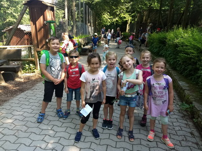 |       Am  29.05.2018 machten sich unsere Erstklässler auf den Weg in den Heimat-Tierpark  Olderdissen. Während der Busfahrt nach Bielefeld wurde schon fleißig gerätselt,  welche Tiere uns erwarten. Erste Anlaufstelle im Tierpark war der Spielplatz,  an dem wir unseren Proviant auspackten und bei bestem Wetter frühstückten. Nach  der Stärkung fanden wir uns in Kleingruppen zusammen, um auf Entdeckungstour zu  gehen. Ein großes Highlight waren die Fütterungen der Seeotter und Luchse. Eine  Mitarbeiterin des Parks war so nett und beantwortete geduldig unsere vielen  Fragen. Besonders Spaß machte das Füttern (mit dem parkeigenen Wildfutter) und  Streicheln der Tiere. Ein echter Hingucker waren die Jungtiere, weil sie so  niedlich waren. | |