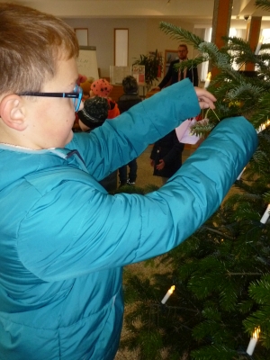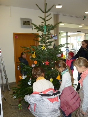 Pünktlich zum ersten Advent haben die Klasse 3d in Vennebeck (29. November) und die Klassen 2a und 2b in der Sparkasse in Holzhausen (30. November) die Tannenbäume geschmückt. Der Schmuck wurde gemeinsam im Kunstunterricht gebastelt. Als Dankeschön gab es für alle Kinder ein kleines Geschenk.