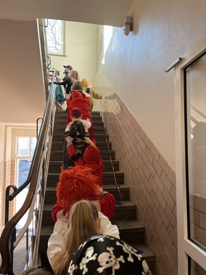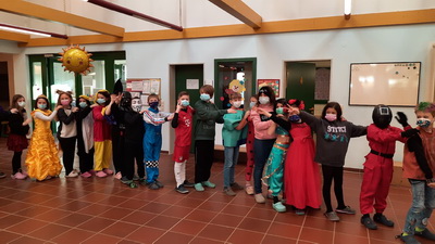 Wenn Dalmatiner, Prinzessinnen, Zauberer oder Steinzeitmenschen in der Schule auftauchen, feiern wir Karneval! In diesem Jahr wurde kräftig Rosenmontag gefeiert. Anbei ein paar Impressionen: |