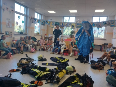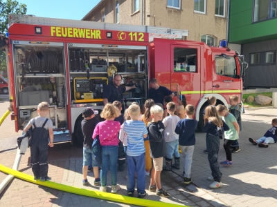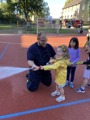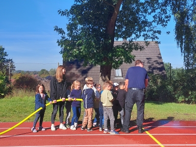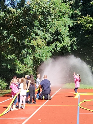 Im September fanden die Brandschutz-Tage statt. Dank großer Unterstützung der ortsansässigen Rettungskräfte konnte auf dem Schulhof ein Feuerwehrauto und ein RTW stehen, gelöscht werden, die Schutzkleidung ausprobiert, experimentiert und die Rauchentwicklung in einem Haus sichtbar gemacht werden.